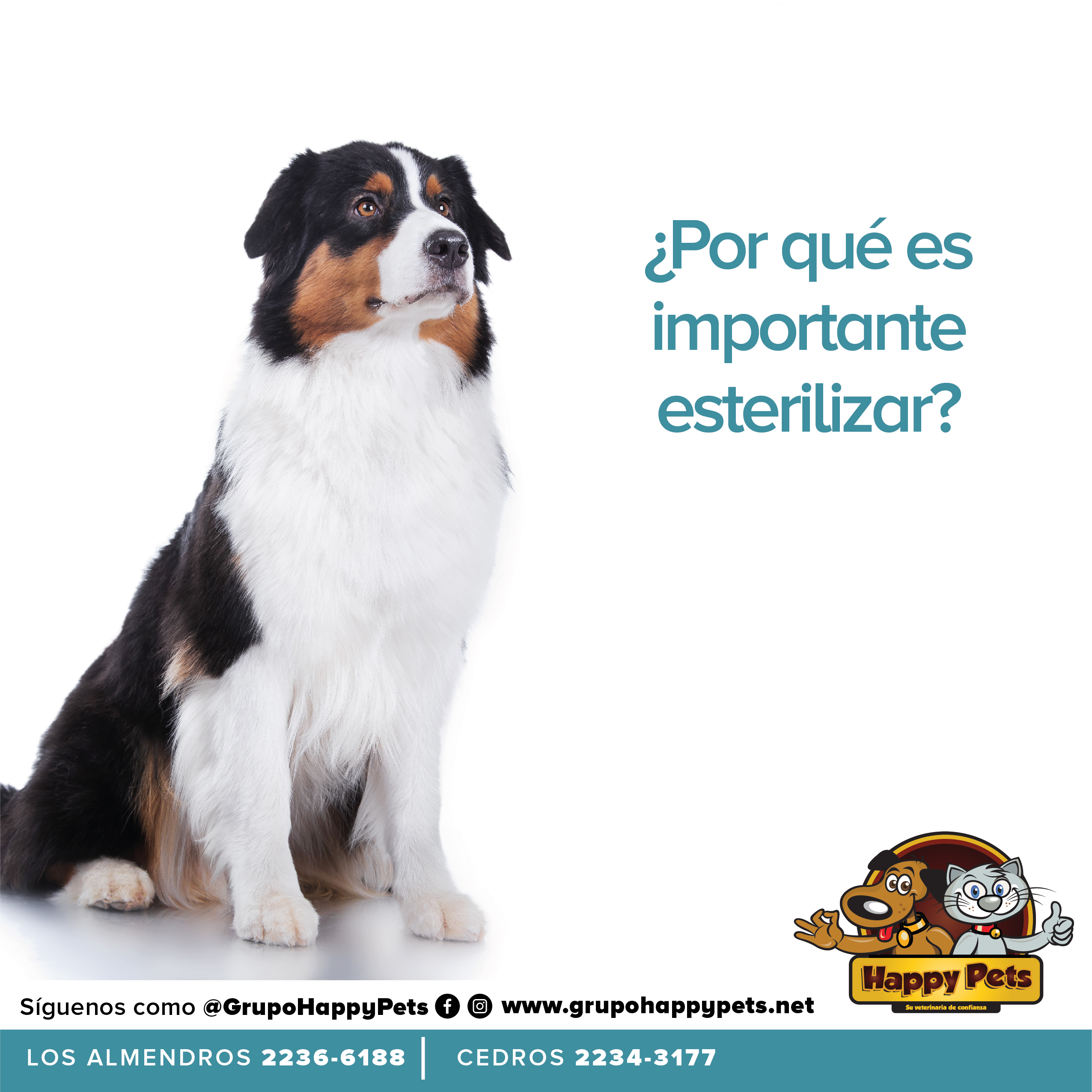 La decisión de esterilizar tempranamente a una mascota, perro o gato, macho o hembra, es un hecho que afectará positivamente su existencia. Así lo determinan los estudios veterinarios a lo largo de todo el mundo. Esta medida permite prolongar su vida Y QUE SEA SANA, en un tiempo significativamente mayor, comparándola a una mascota no esterilizada y además permite controlar la población existente, evitando la sobrepoblación.